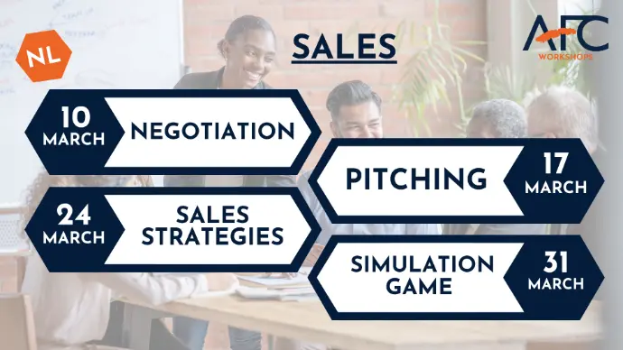 This track offers four workshops essential for success in sales. Students will learn effective sales strategies to achieve goals, as well as perfect their pitching skills. This way, they will be able to do convincing presentations and build negotiation skills to close successful deals. They will be able to apply all of this in practice during a dynamic simulation game in the final workshop.