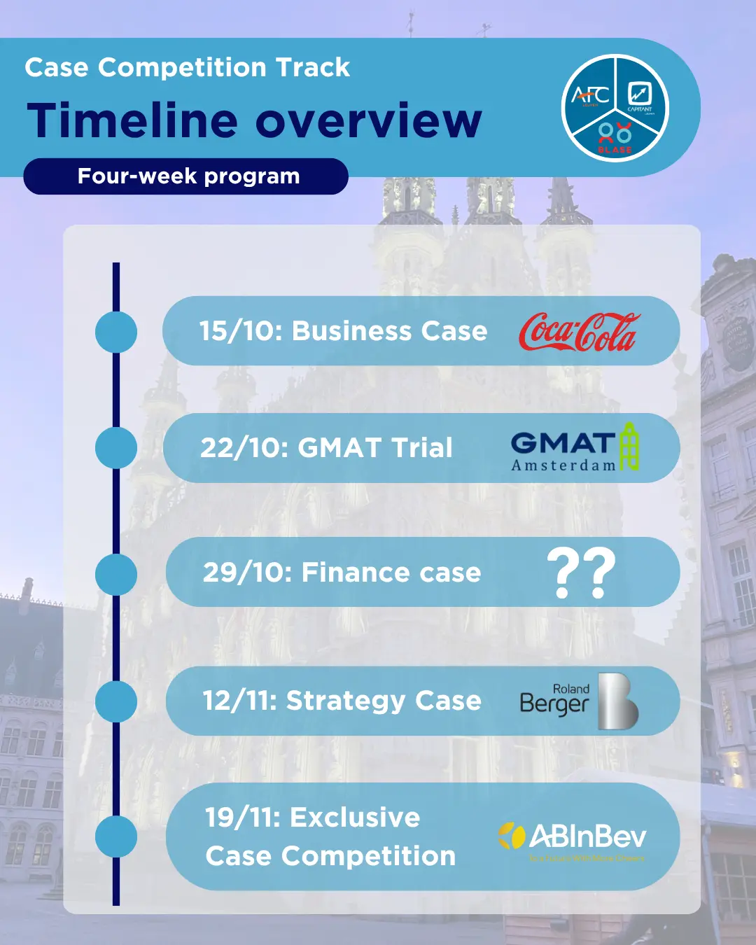 From October 15th to November 19th, join four weekly workshops focused on consulting, business, and finance, led by experienced professionals. Each session ends with feedback and networking opportunities. The program concludes on November 19th with a final competition tackling a real-world challenge.